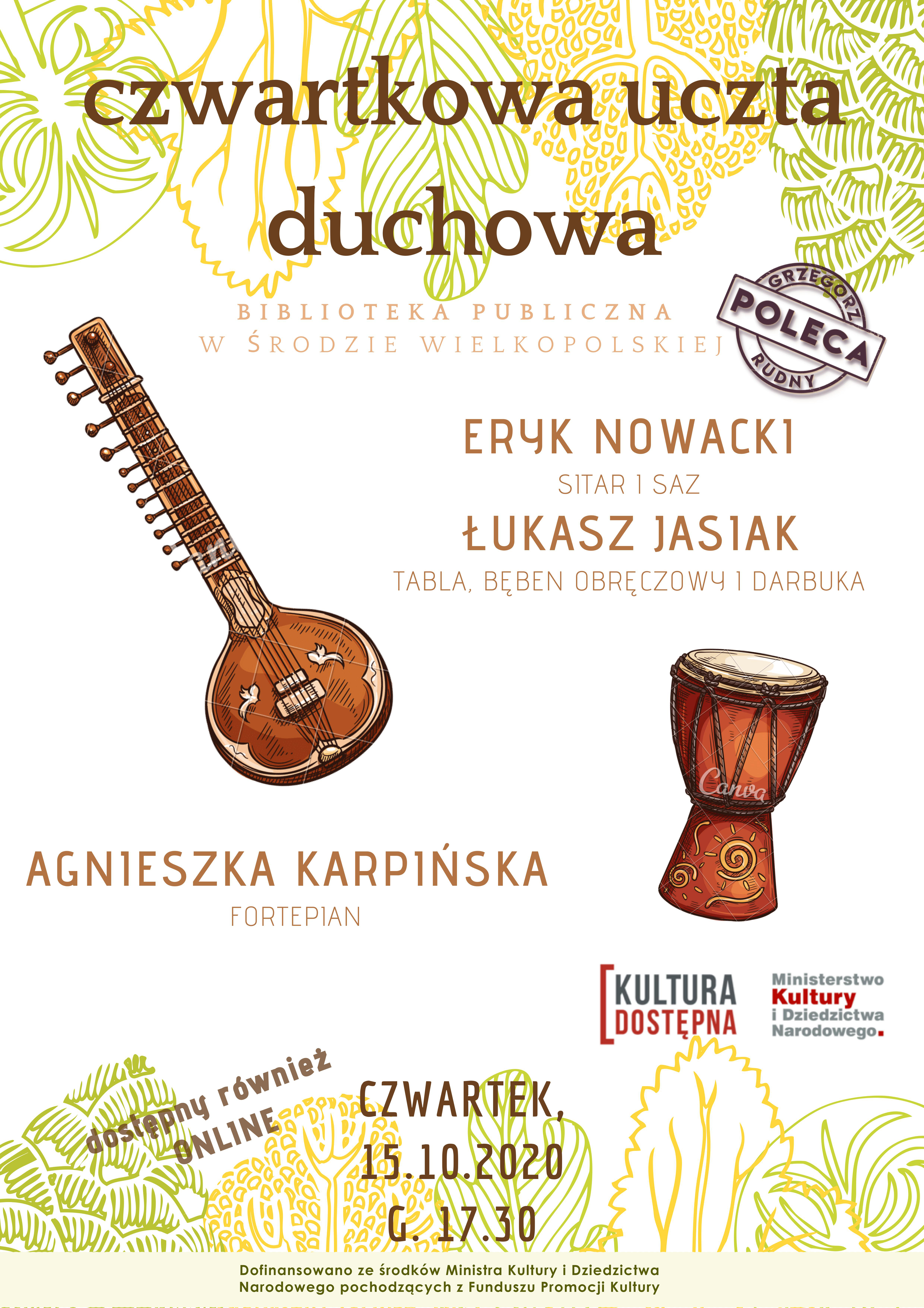 Biblioteka Publiczna Zaprasza na koncert z cyklu: Czwartkowa Uczta Duchowa, który odbędzie się 15 października o godz. 17.30 w sali BP. Koncert będzie dostępny również on-line.